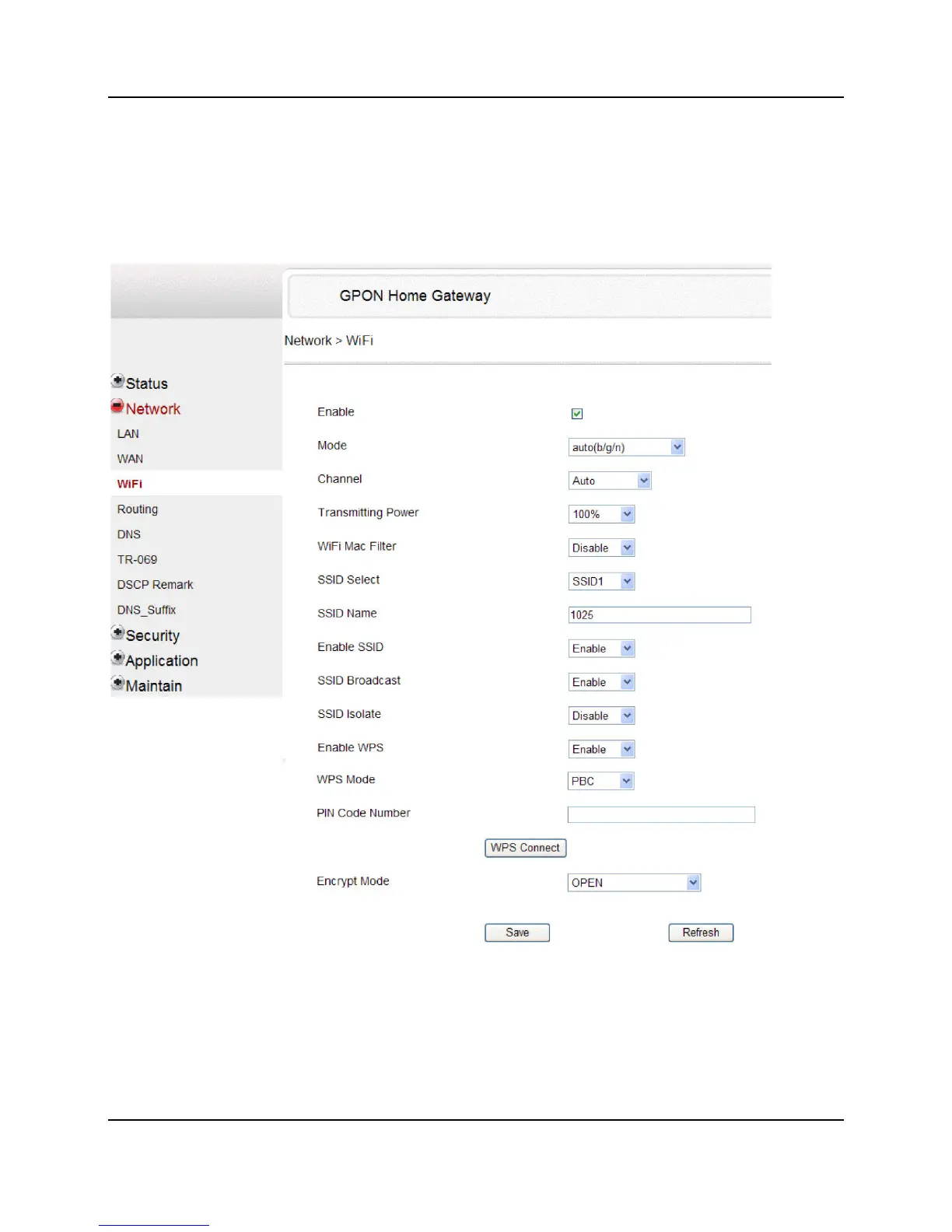 The Wi-Fi page is used to configure the basic wireless network parameters.
