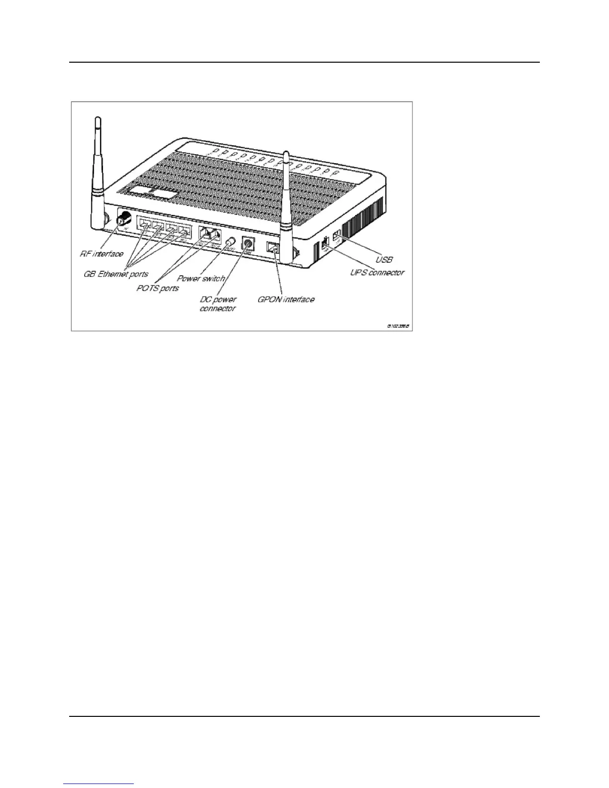 Figure T077G Overview shows the T077G ports and buttons.
