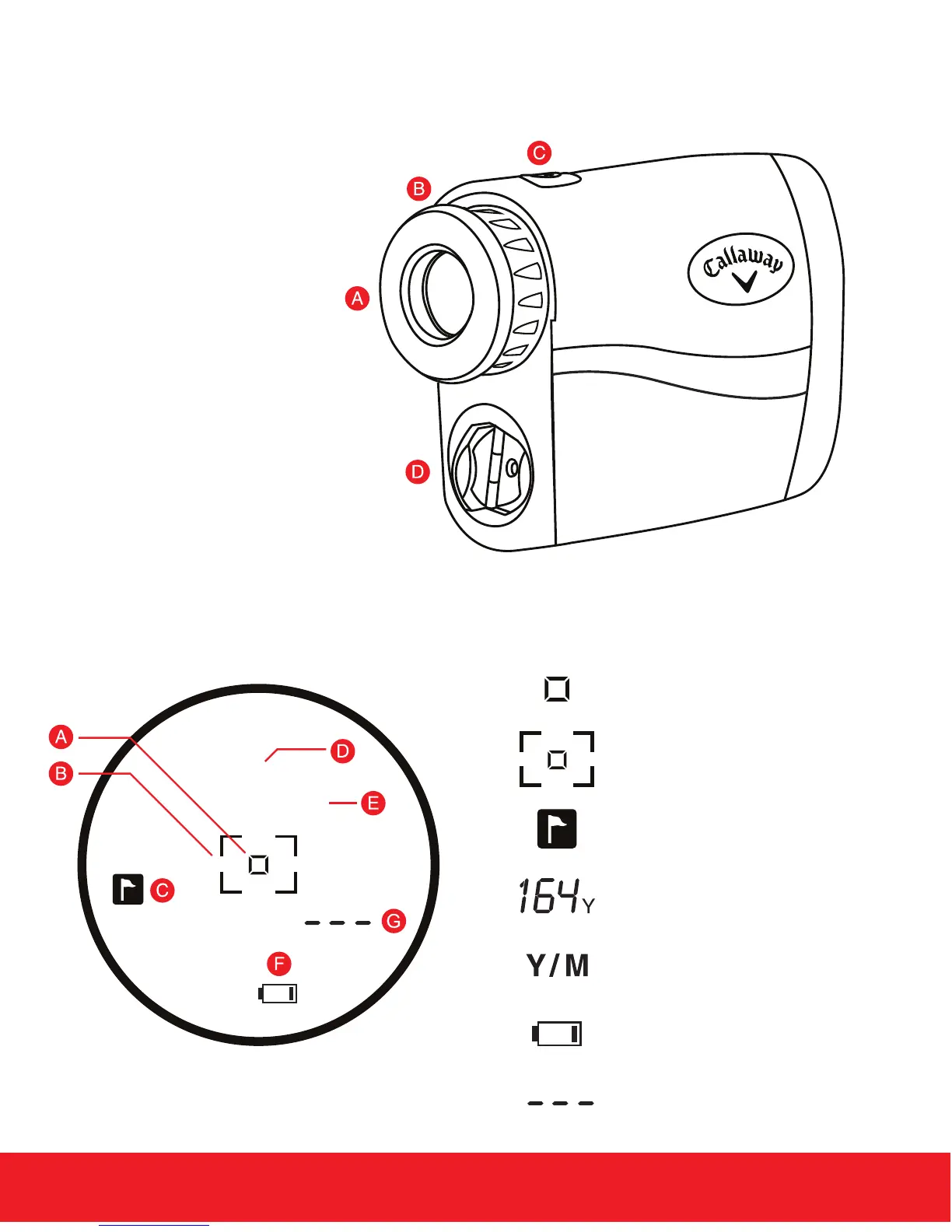 Callaway 200 S - Rangefinder Diagram and LCD Display Overview; Device Components; LCD Display Indicators