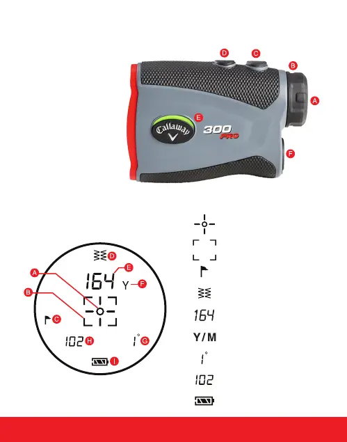 Callaway 300 PRO - Device Overview and Display; Rangefinder Component Diagram; LCD Display Information