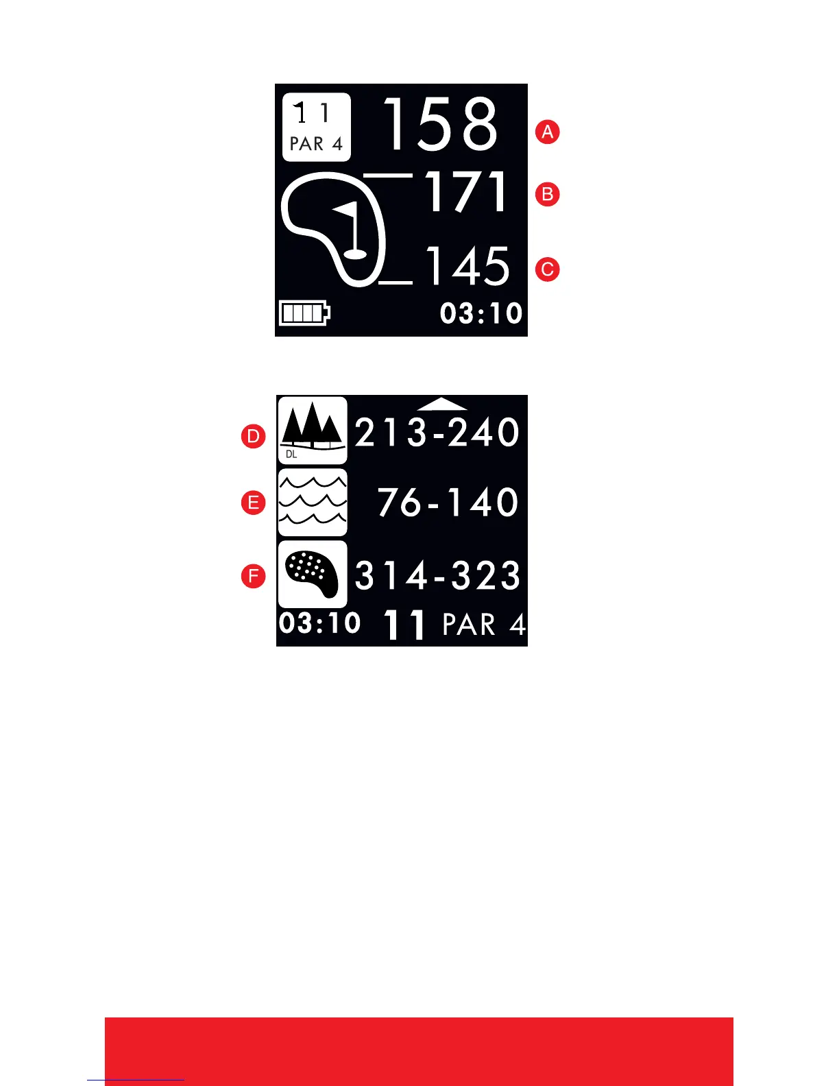 F. Distance to layup or carry Bunker