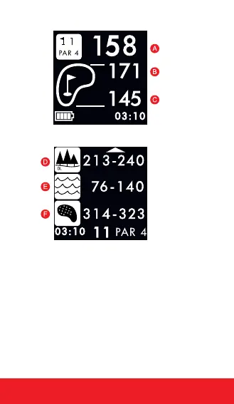 Callaway GPSy Watch - Display Information; Play Mode Display Elements; Hazard Mode Display Elements