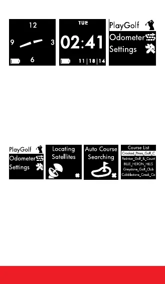 Callaway GPSy Watch - Time and Course Modes; Time Display and Settings; Golf Course Selection Process