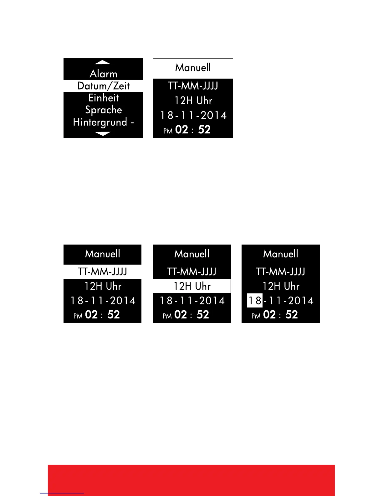 die Liste der Zeit-/Datumseinstellungen herauf- oder