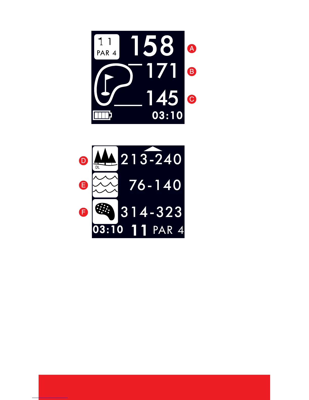 F. Distance to layup or carry Bunker