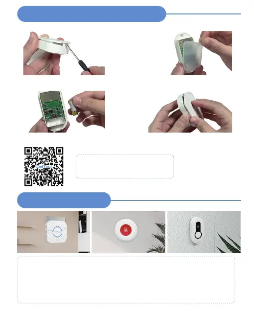 - Fix the transmitter in place with (supplied) double-sided adhesive tape. (clean the