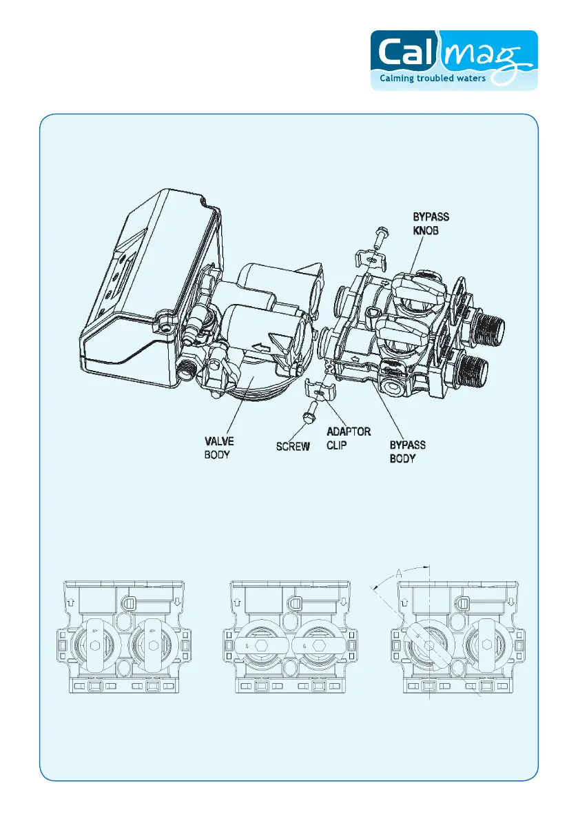 The bypass valve is provided with various functions such as bypass and water hardness adjustment.