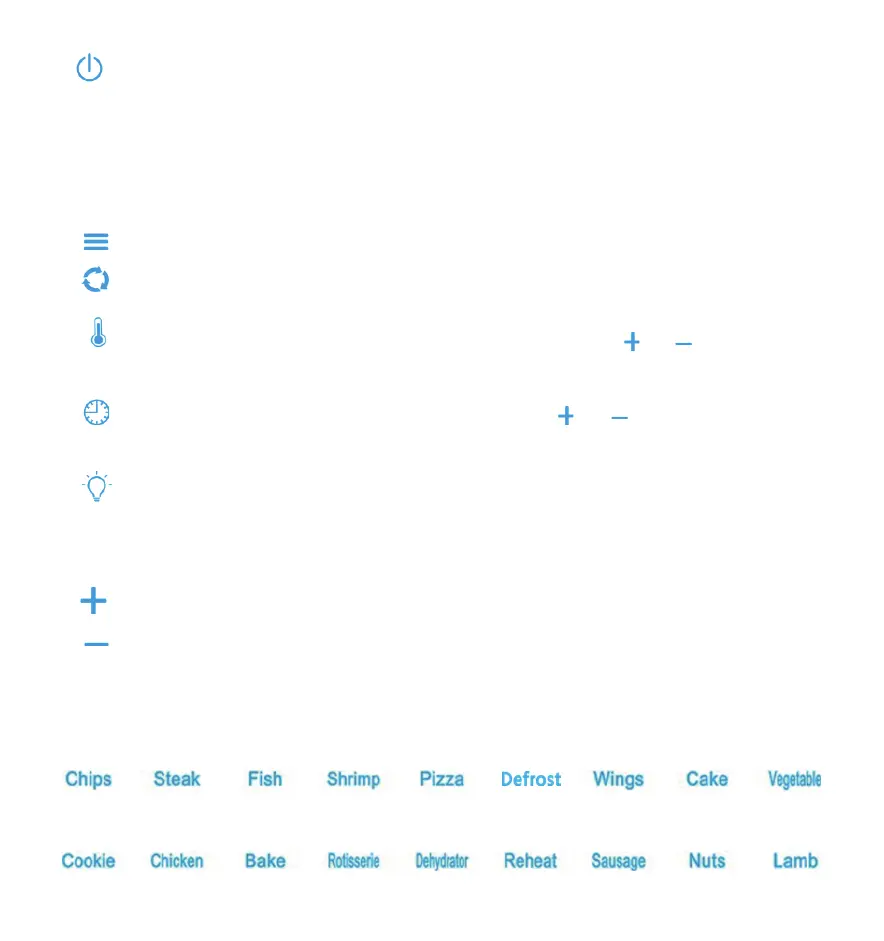 3. Rotation Button - Select this button when cooking anything using the rotisserie mode.