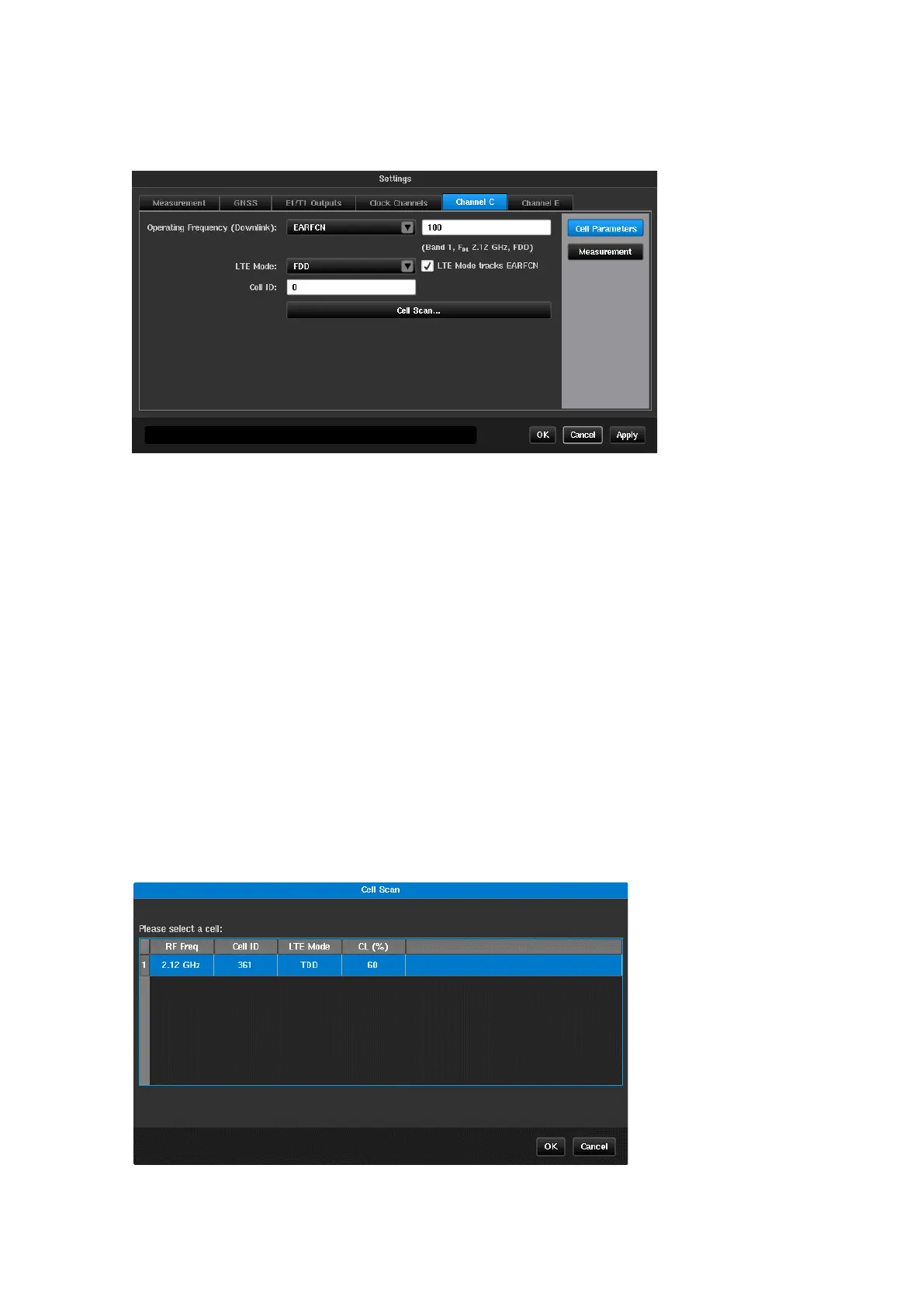 This allows the frequency of the LTE RF signal to be entered, either as