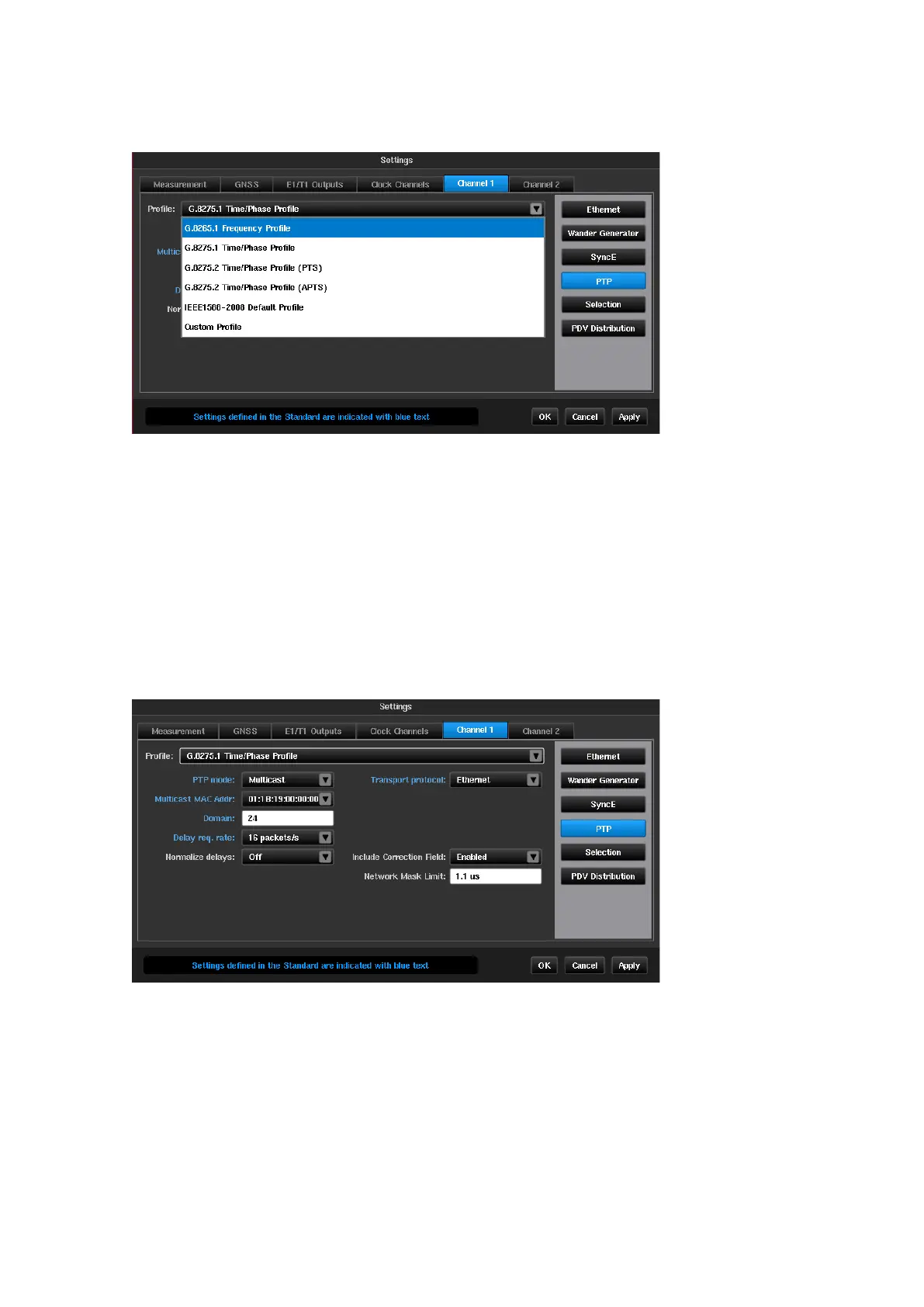 The PTP transport protocol and relevant settings can be pre-set to values according to the ITU-T standard related