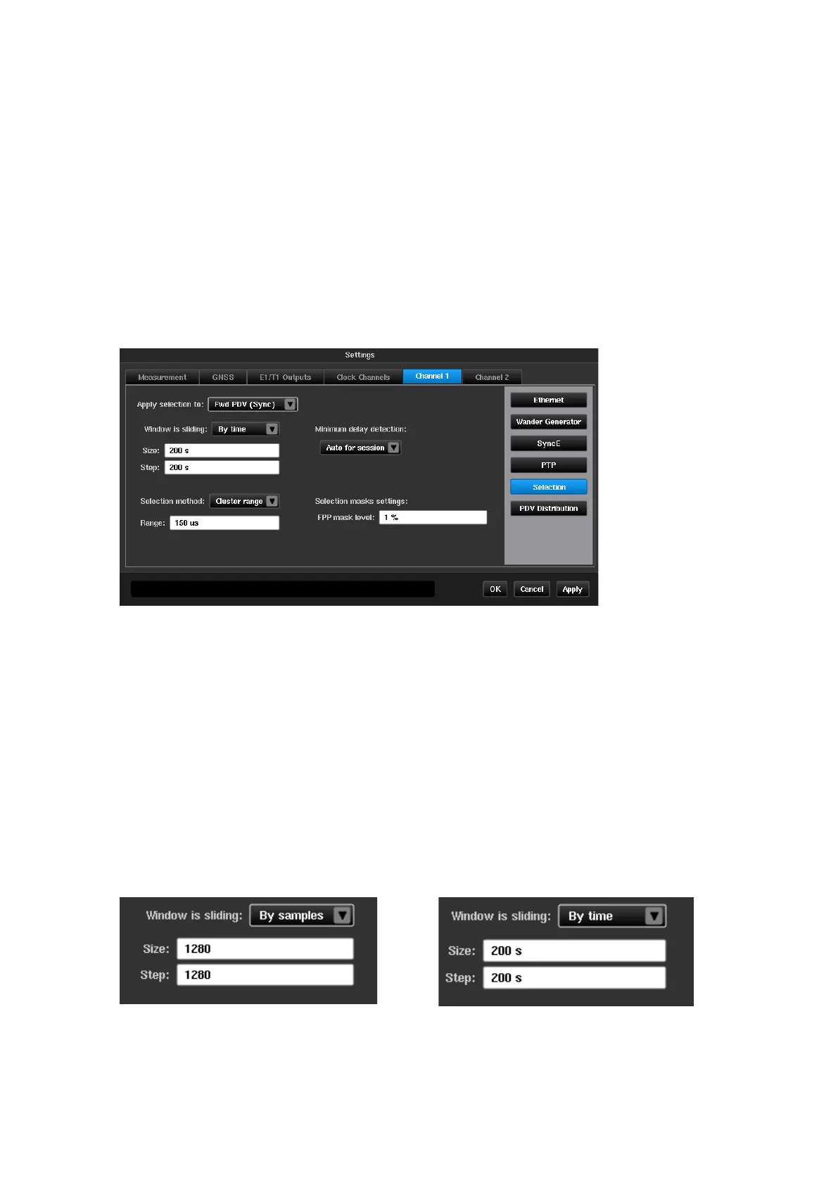 The user can choose one type of window: window sliding by samples or window sliding by time.