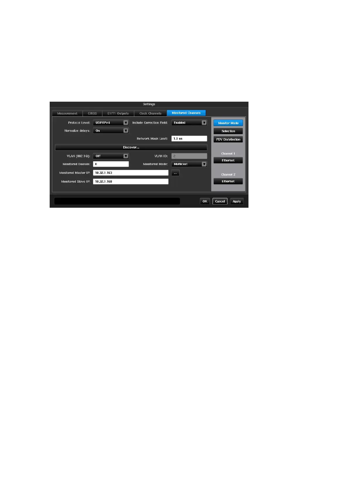 IP addresses of two PTP or NTP nodes which are monitored. This setting is not available
