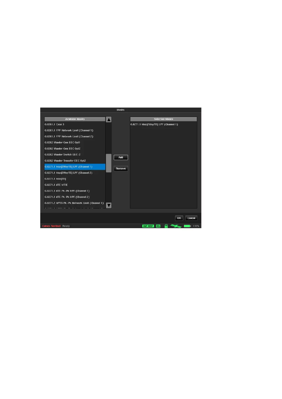 Sentinel provides various predefined masks to be applied to TE, TIE, MTIE and TDEV graphs - six can be selected