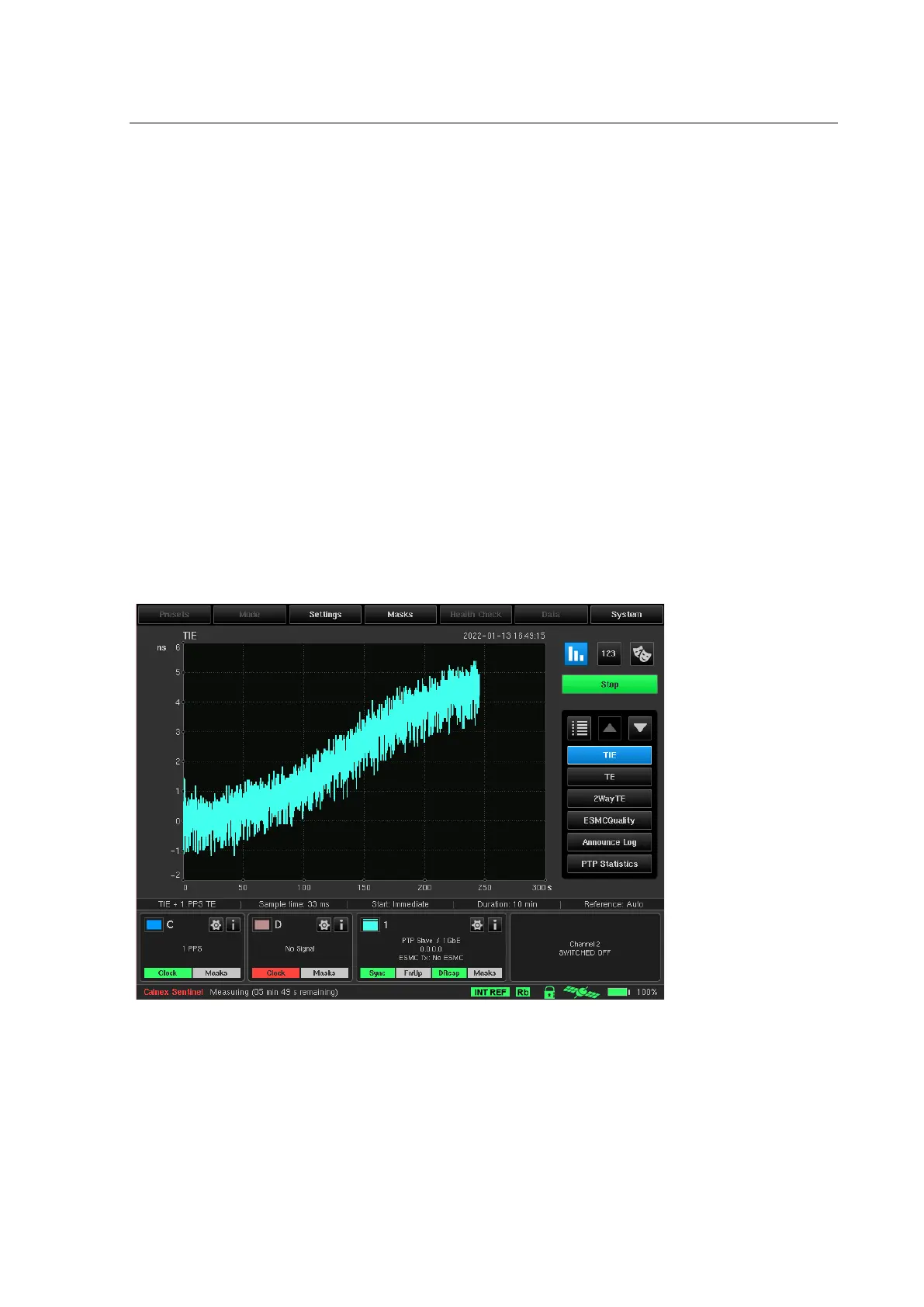 metrics: FPP, MAFE, and 2Way TE) and PTP Statistics can also be displayed during measurement acquisition.