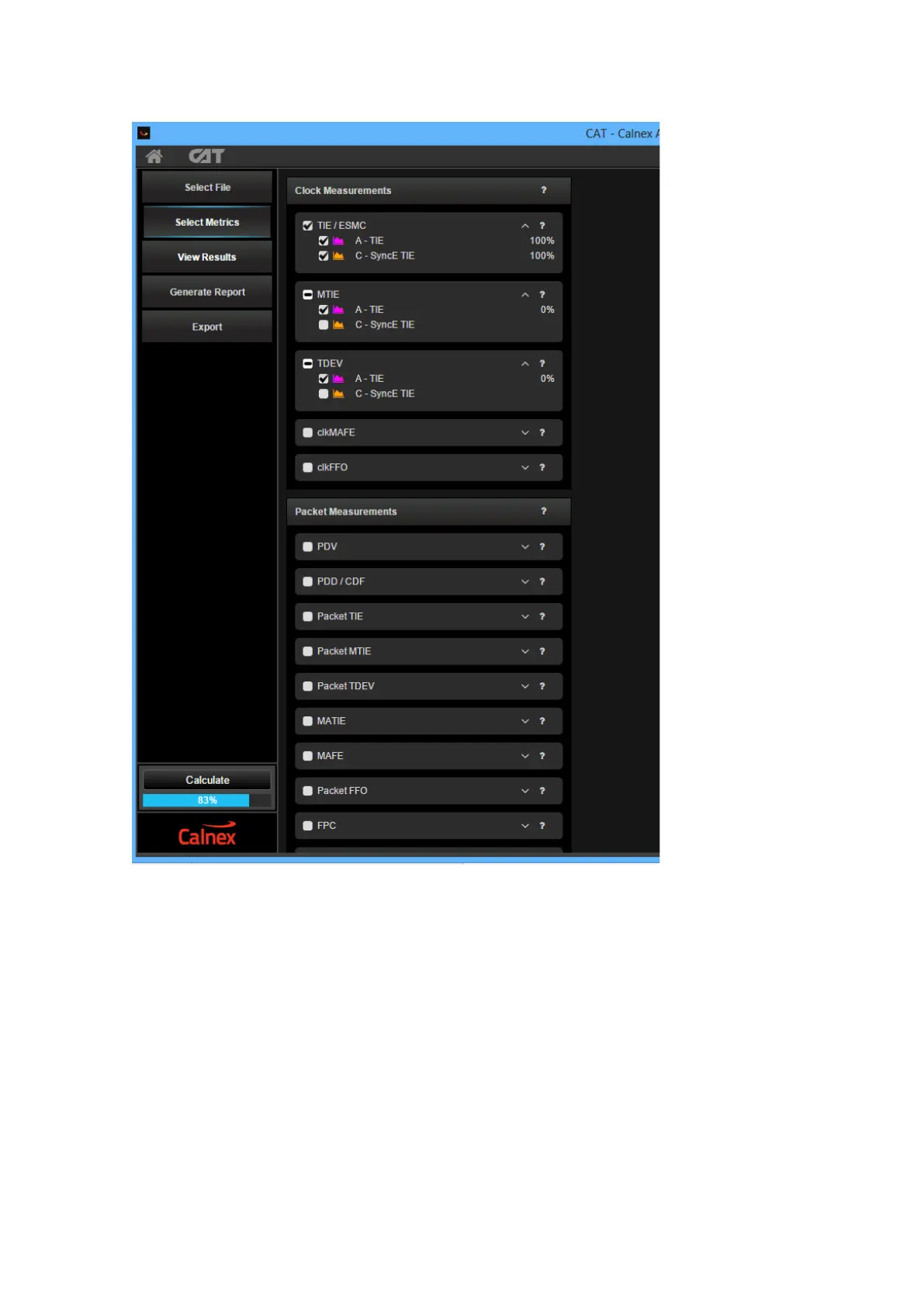 Once these files have been imported the required metrics can be selected from the Select Metrics menu by
