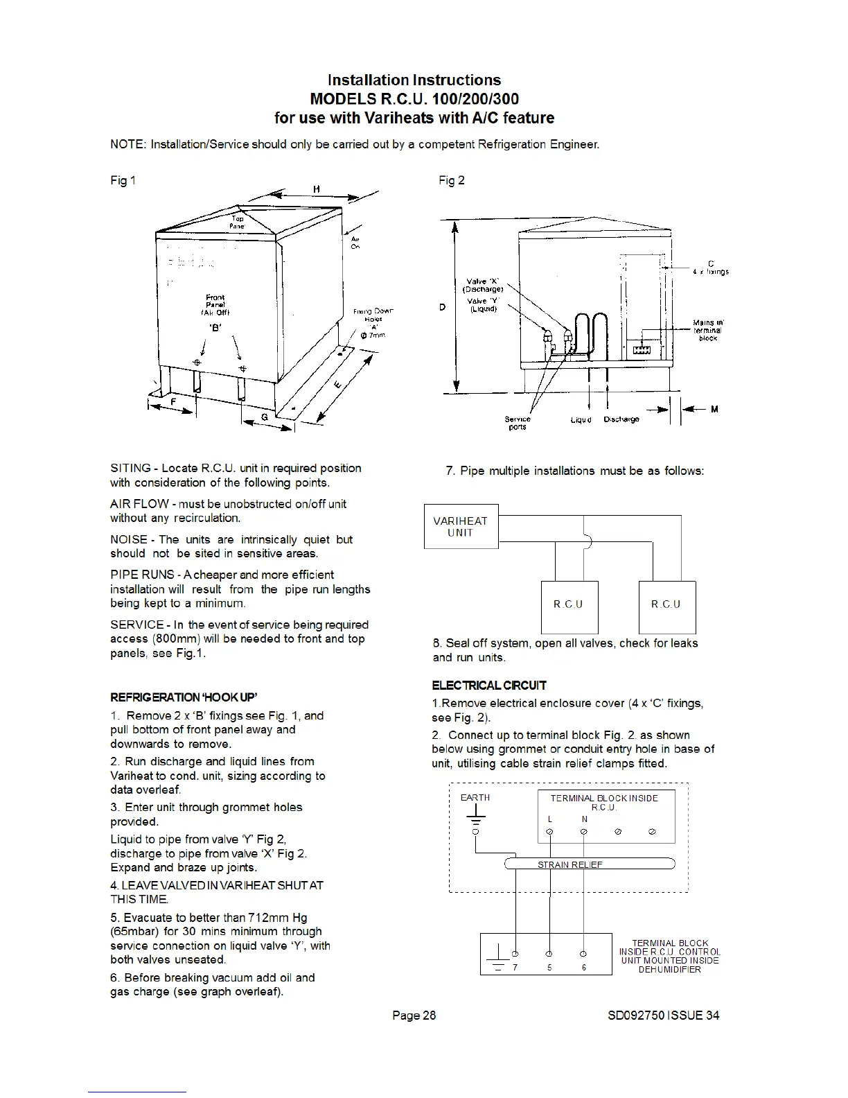 Calorex AW550 - Installation Instructions MODELS R.C.U. 100;200;300 for Use with Variheats with A;C Feature