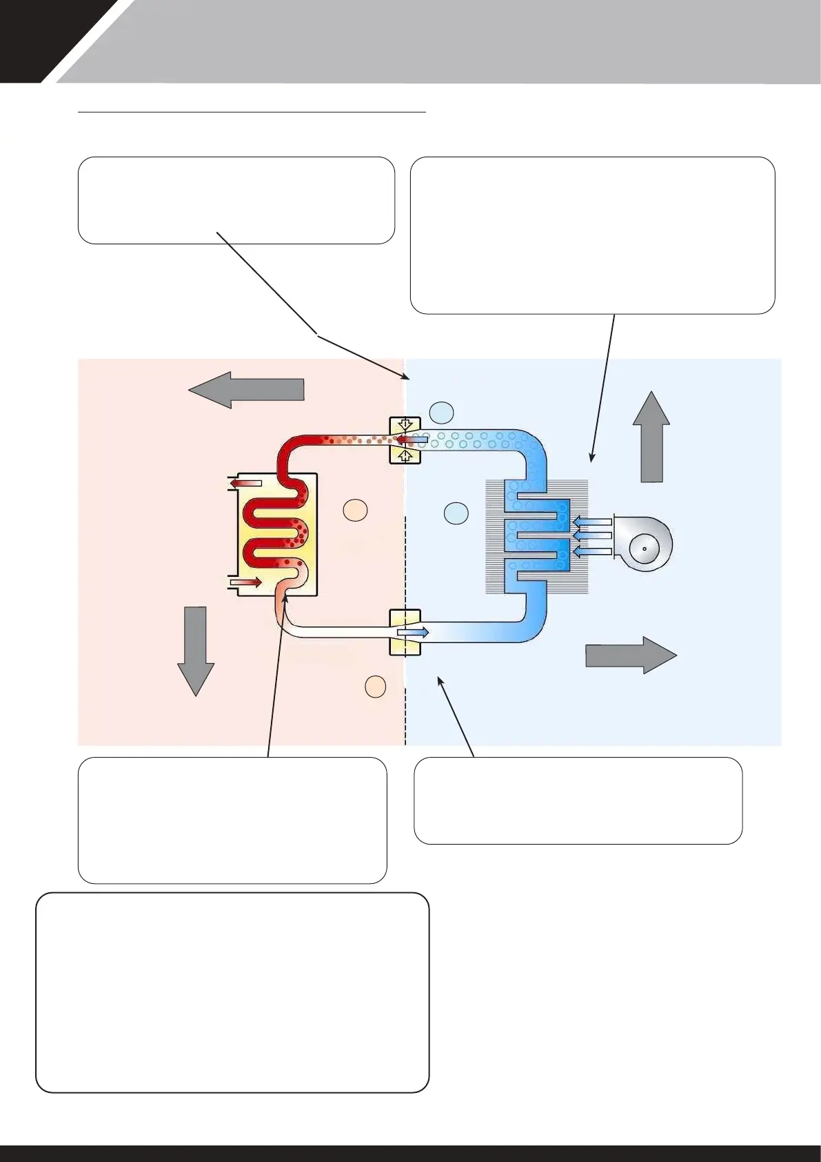 travers les ailettes de l’évaporateur. L’évaporateur est traversé par un