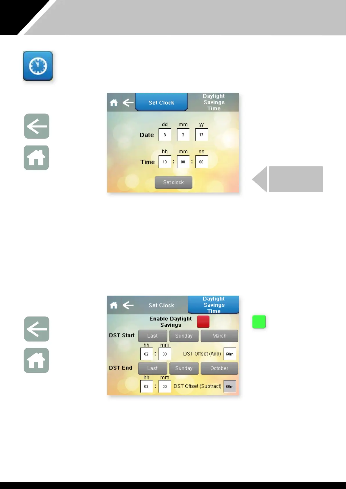 changed. Press Set Clock when e date and time are correct.