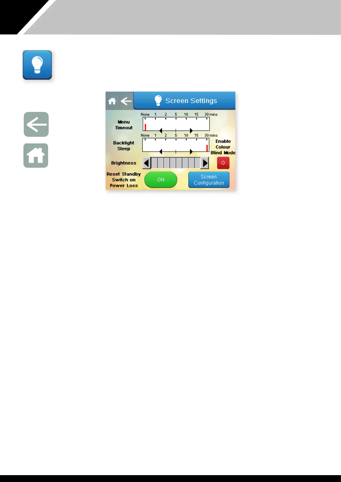 configuration settings. The touchscreen can be recalibrated here if it does not