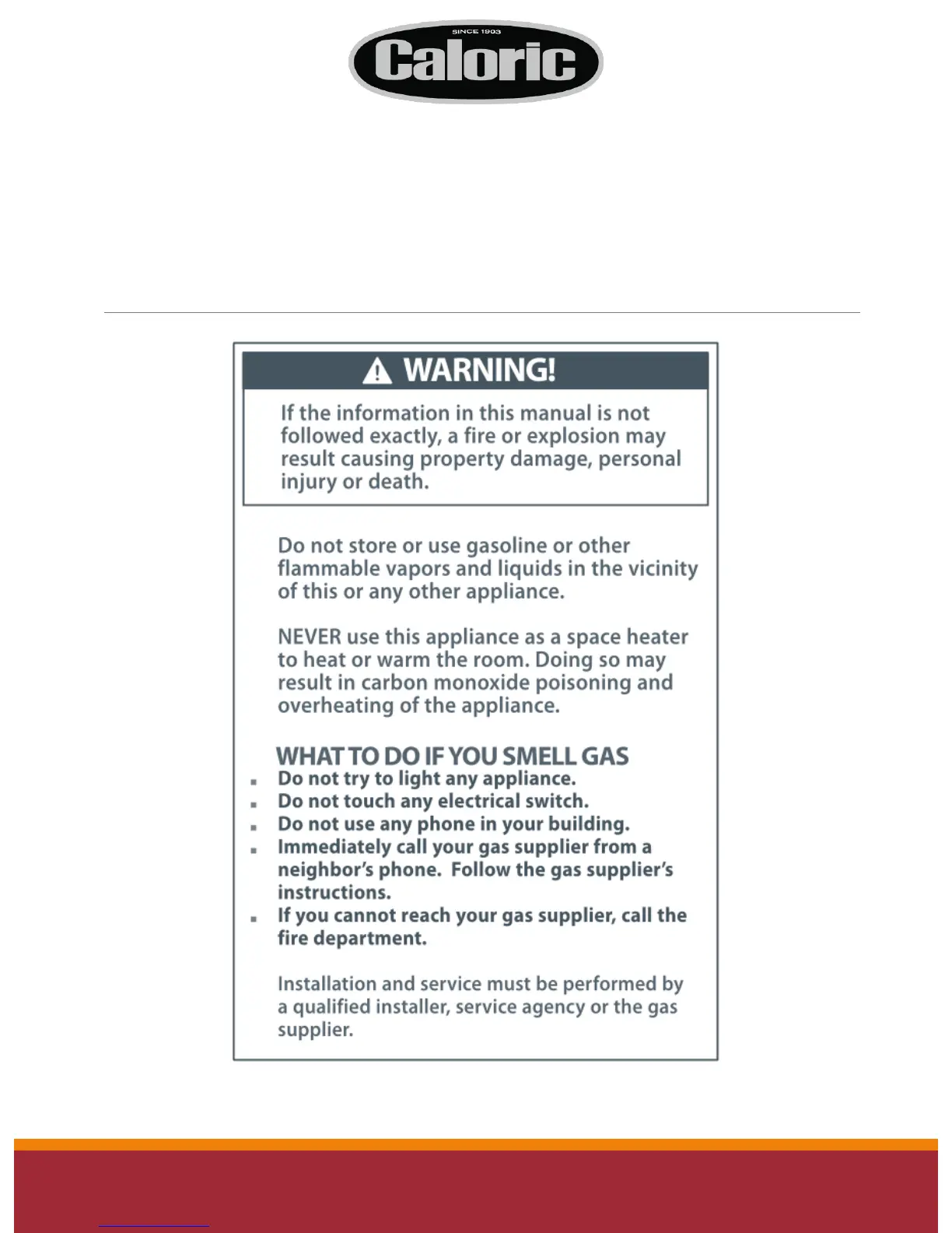 Caloric CPR SERIES - Welcome; Safety Warnings and Emergency Procedures