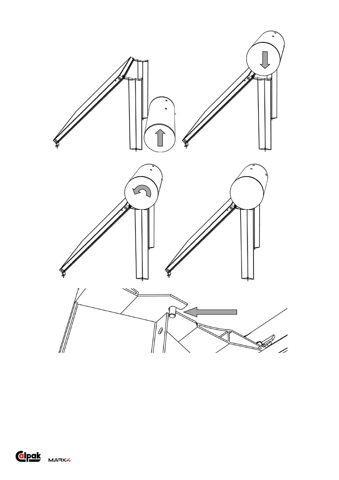 Place the tank on the roof floor with a small rotation backwards. Ensure that the securing bolts of the