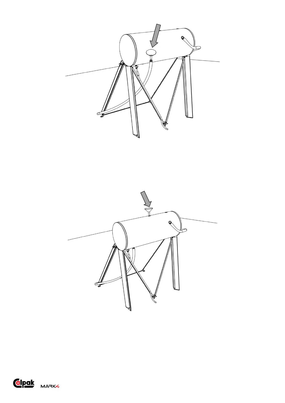 order to fill the collector. Let the liquid overflow through the outlet of the tank until no air bubbles
