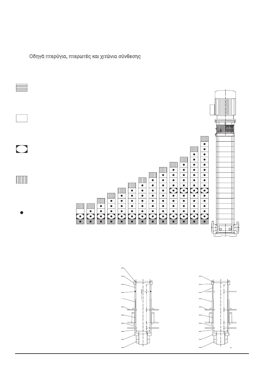 Mellandelarnas, pumphjulen och slitringarnas sammansättning