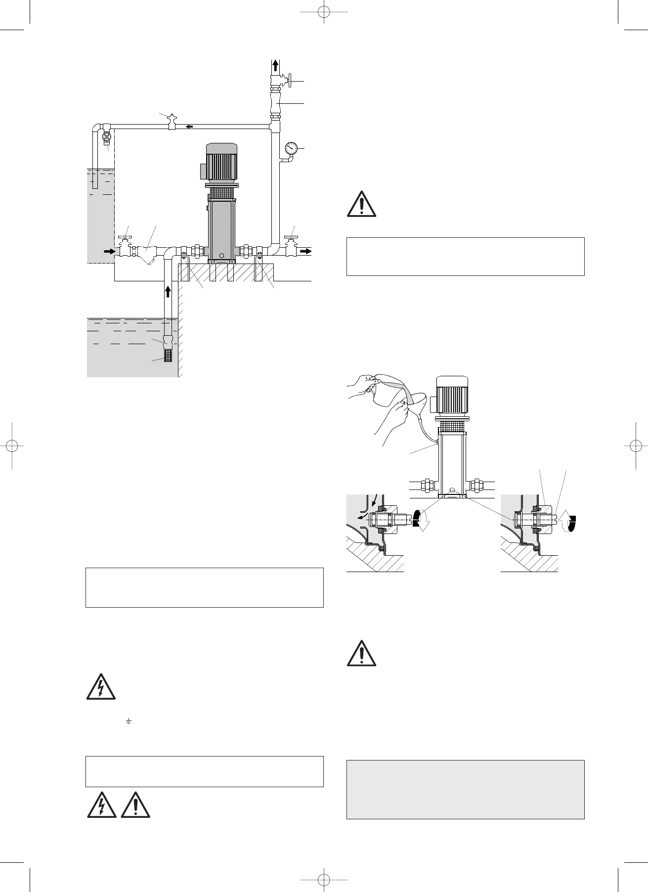 , ne pas ouvrir la vanne de refoulement pendant le remplissage.
