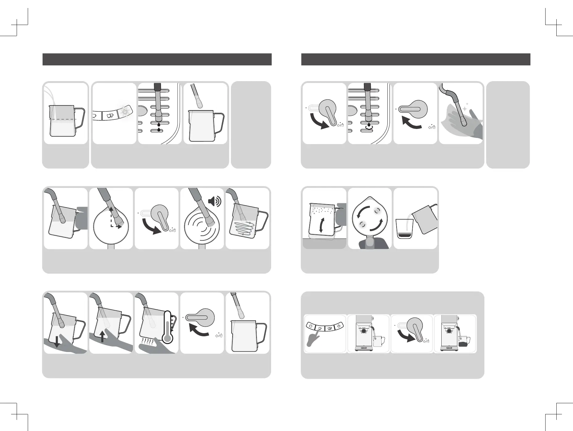 10. Prep Milk Pitcher 11. Before Frothing Milk 14. Purge and Clean Steam Wand