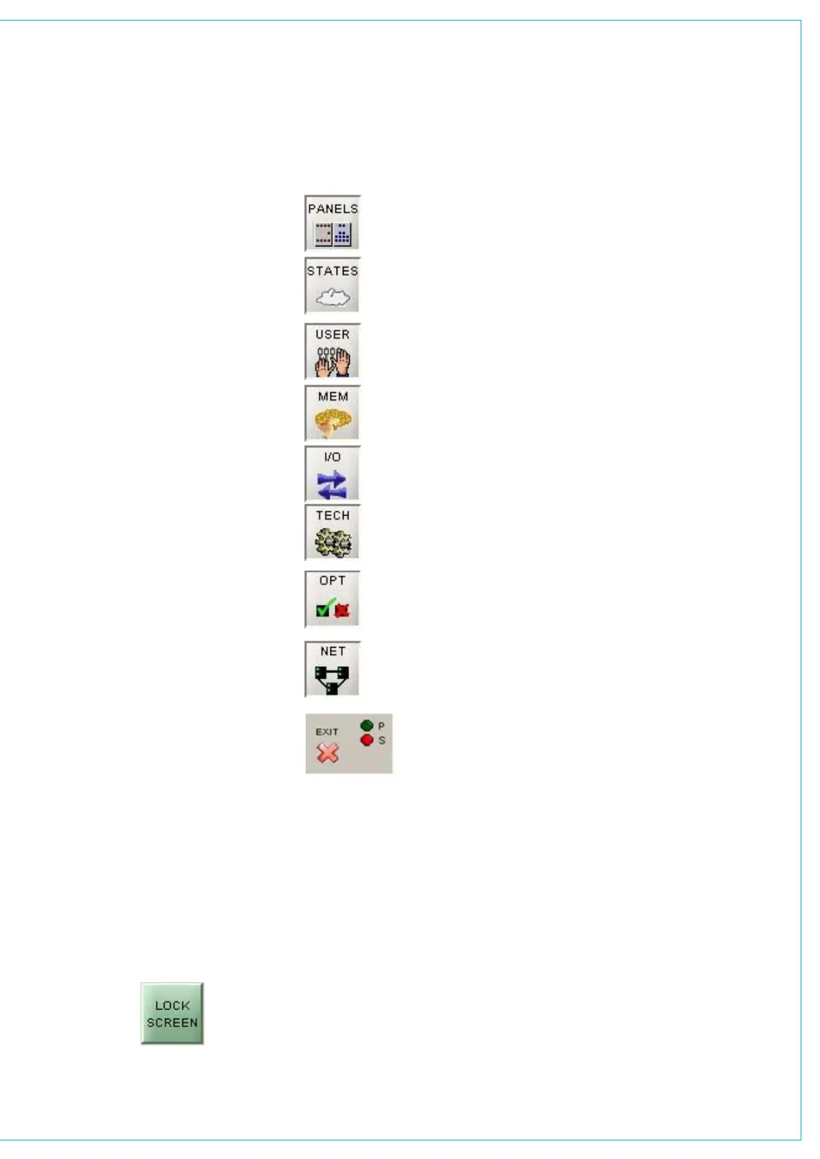 screens accessed by buttons up the left