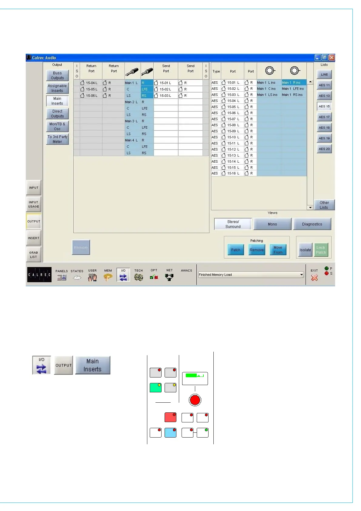output ports for main insert sends can