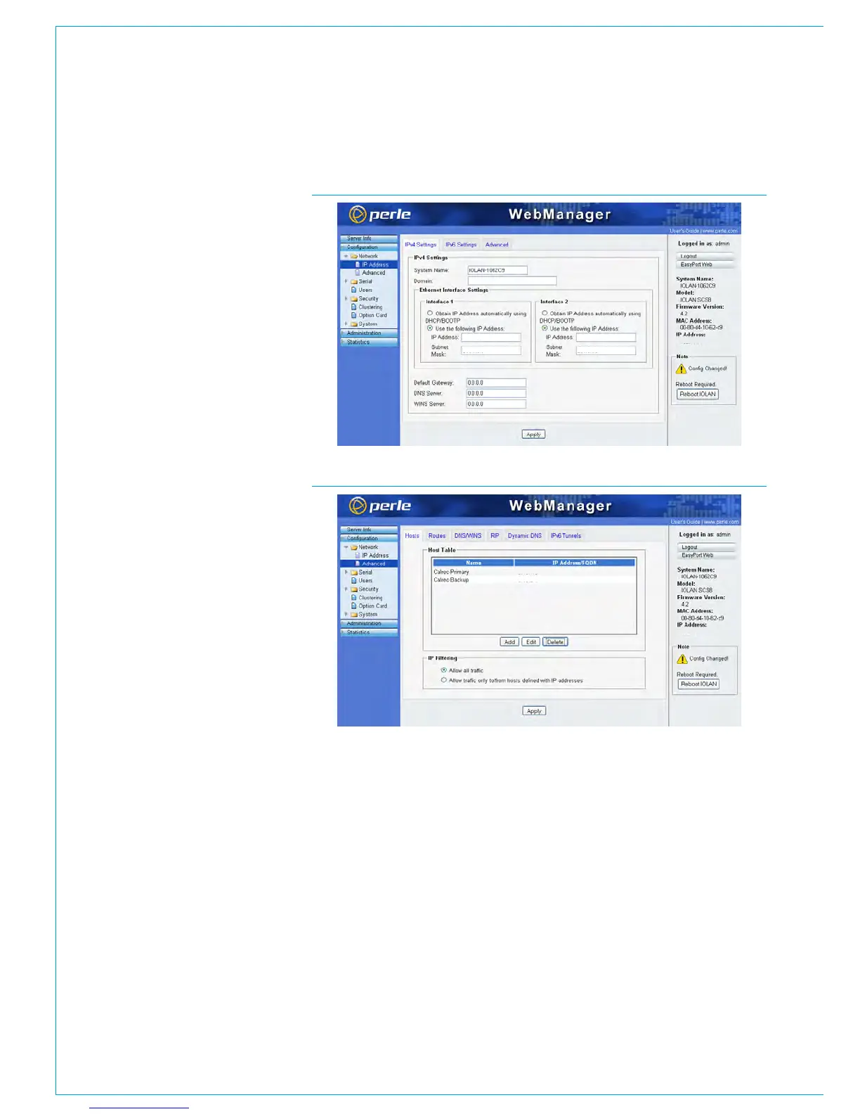 PERLE WEB MANAGER - NETWORK>IP ADDRESS PAGE