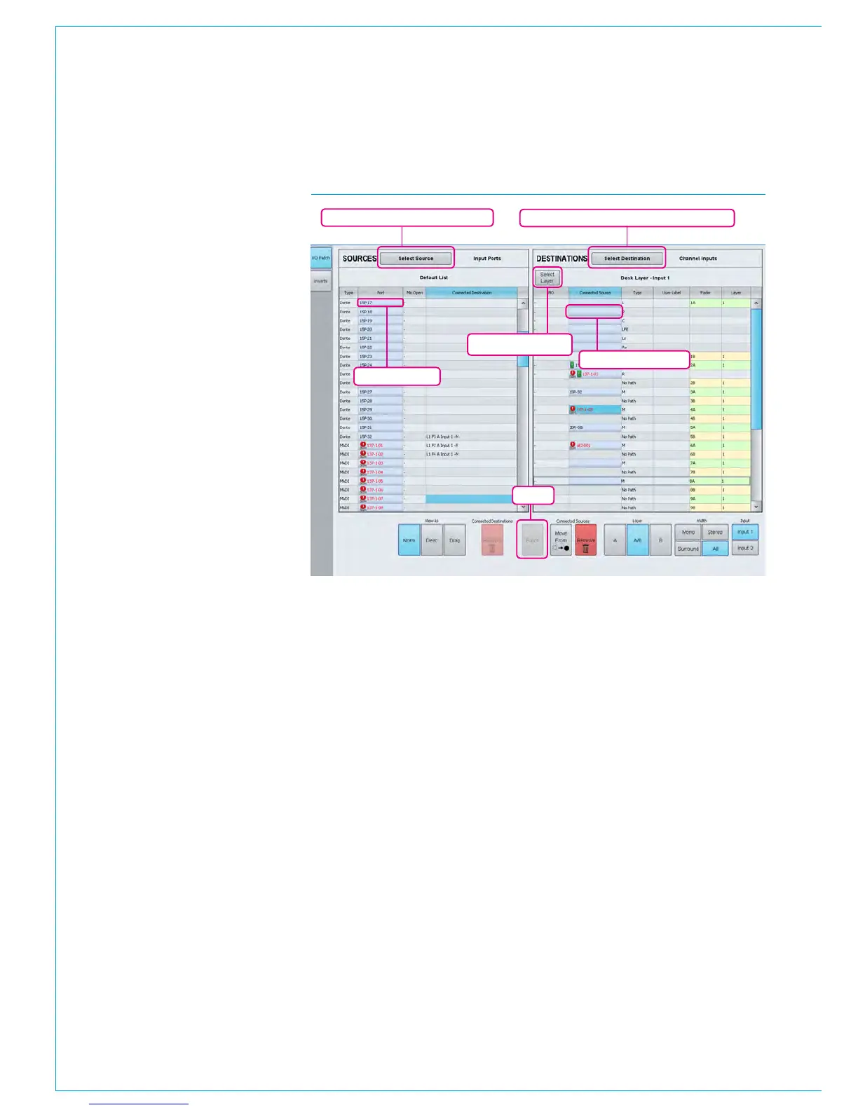 and destinations on the right. To patch