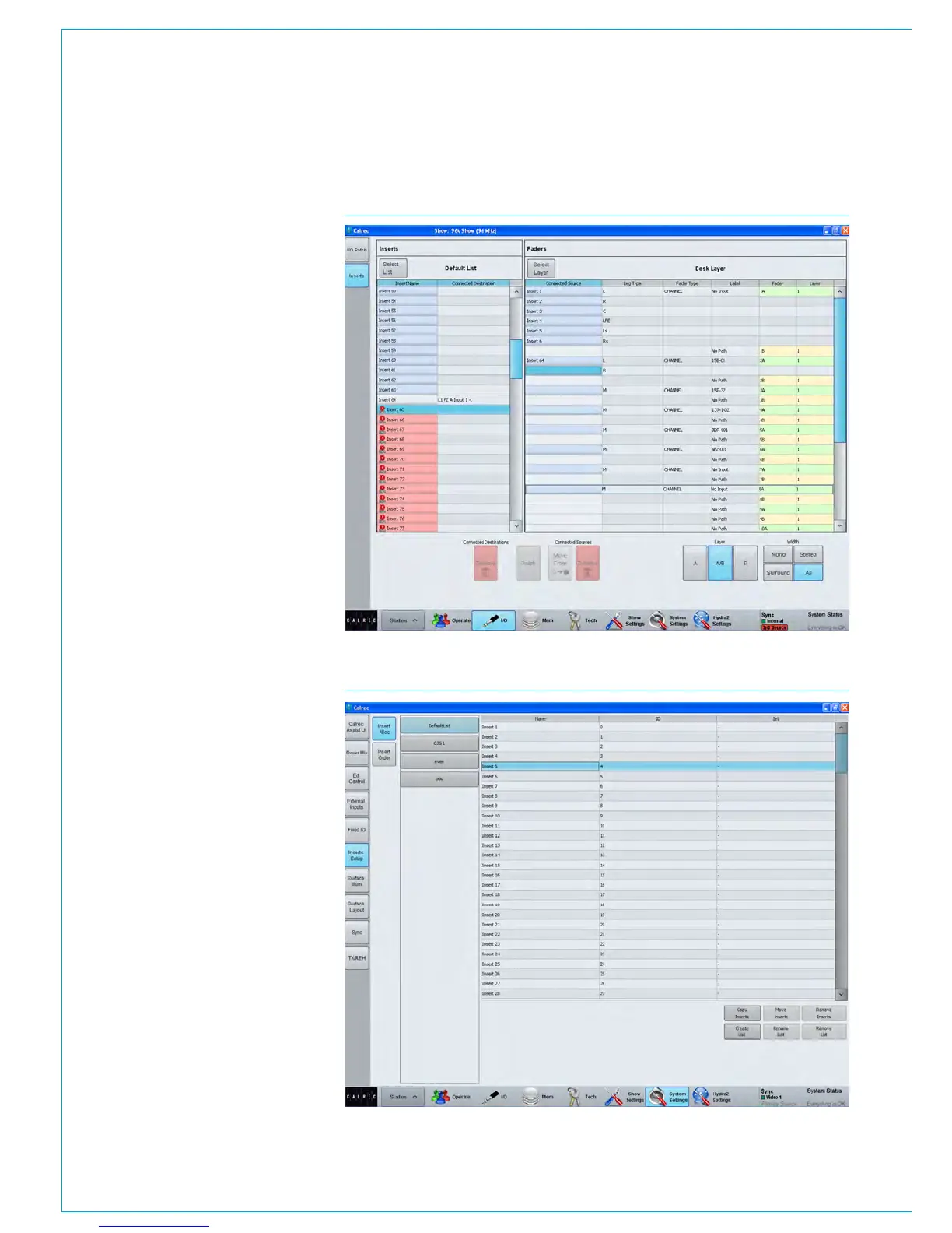 the ‘Inserts Setup’ screen in the Show
