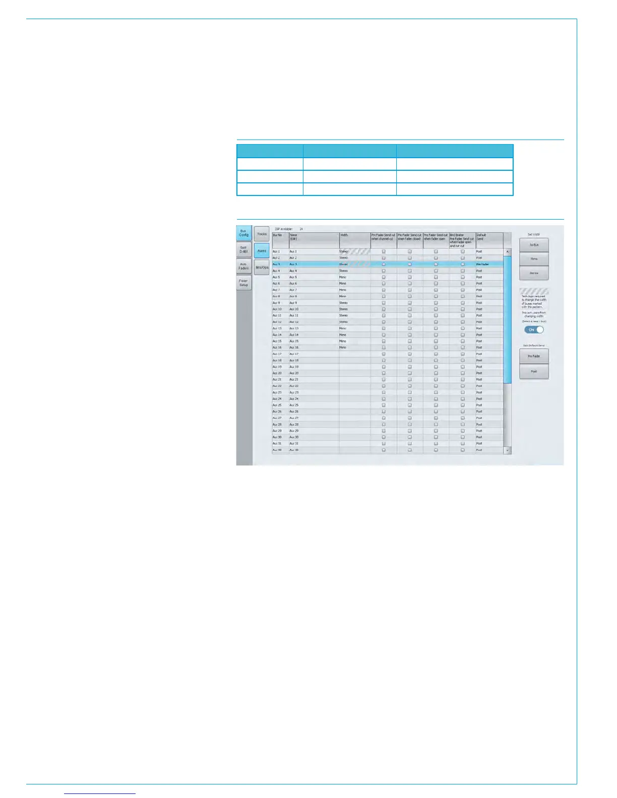 • Auxs cannot route to any other bus.