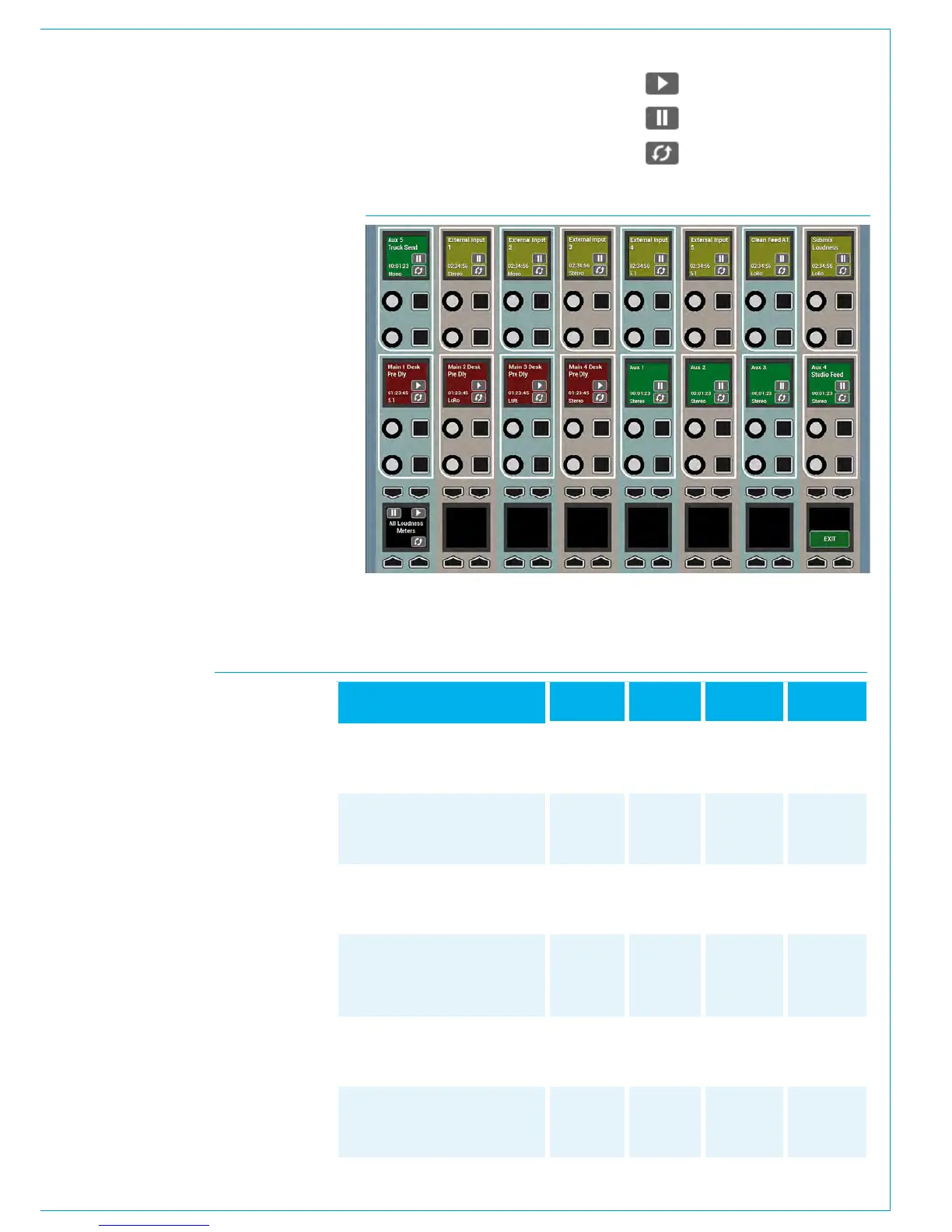 • Loudness meter controls shown within the wild assign row and the bottom row of the