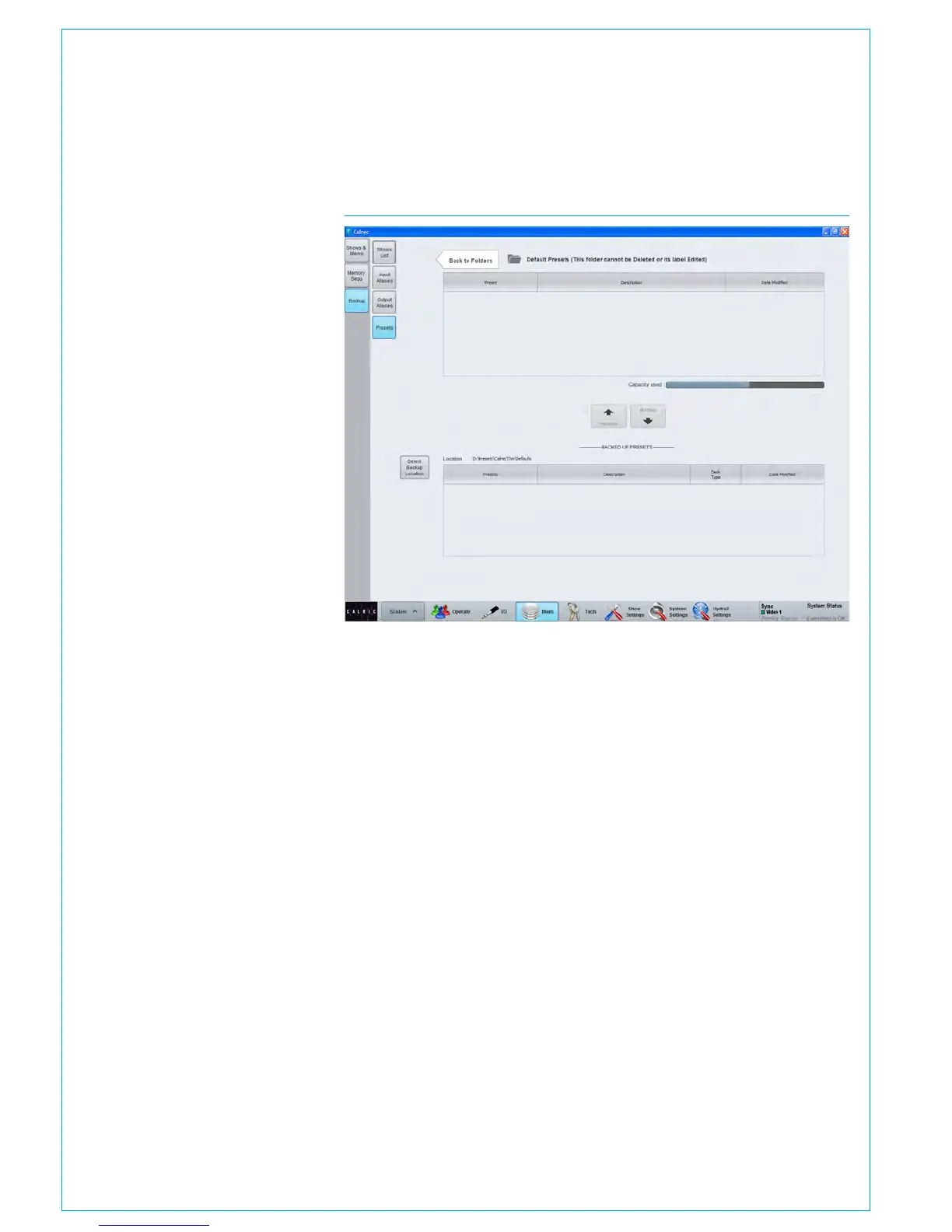 portion of the >Mem>Backup>Presets
