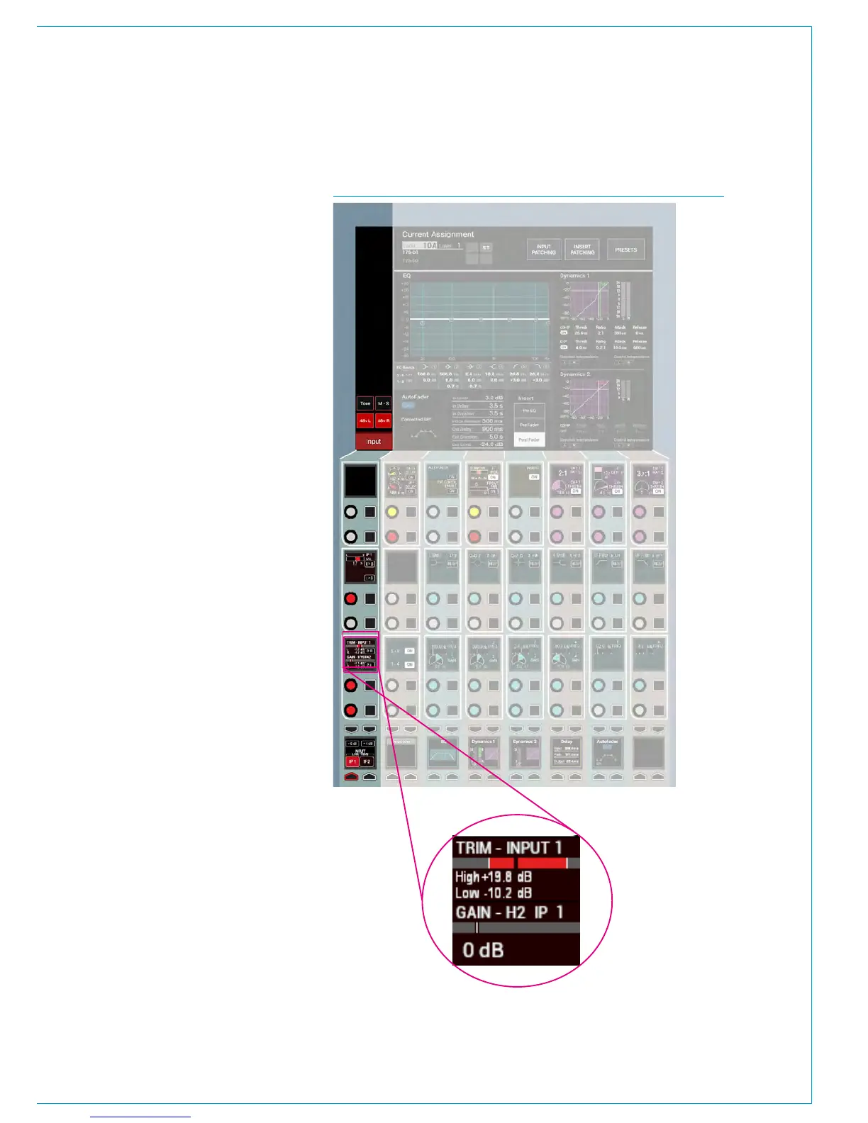 input gain. Pressing the + or - buttons