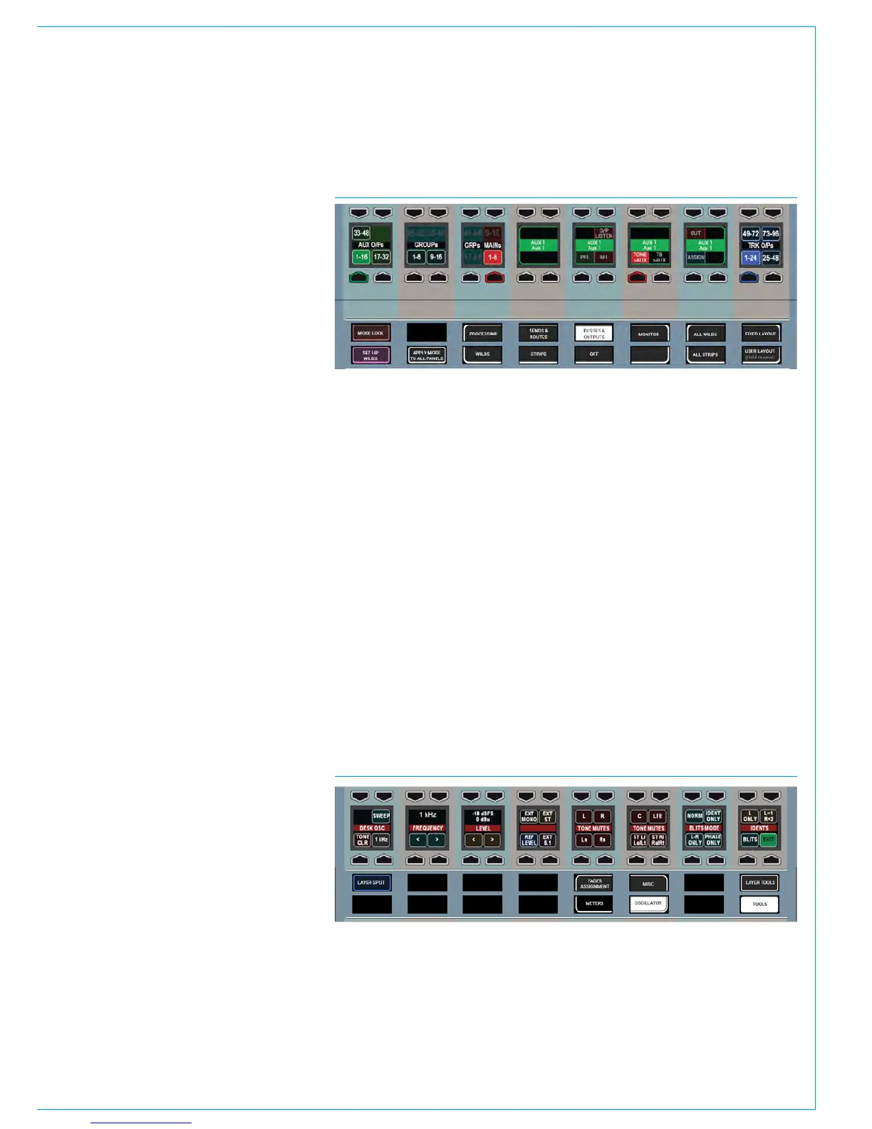 • Panel in Outputs mode shown after Aux 1 rotary control press