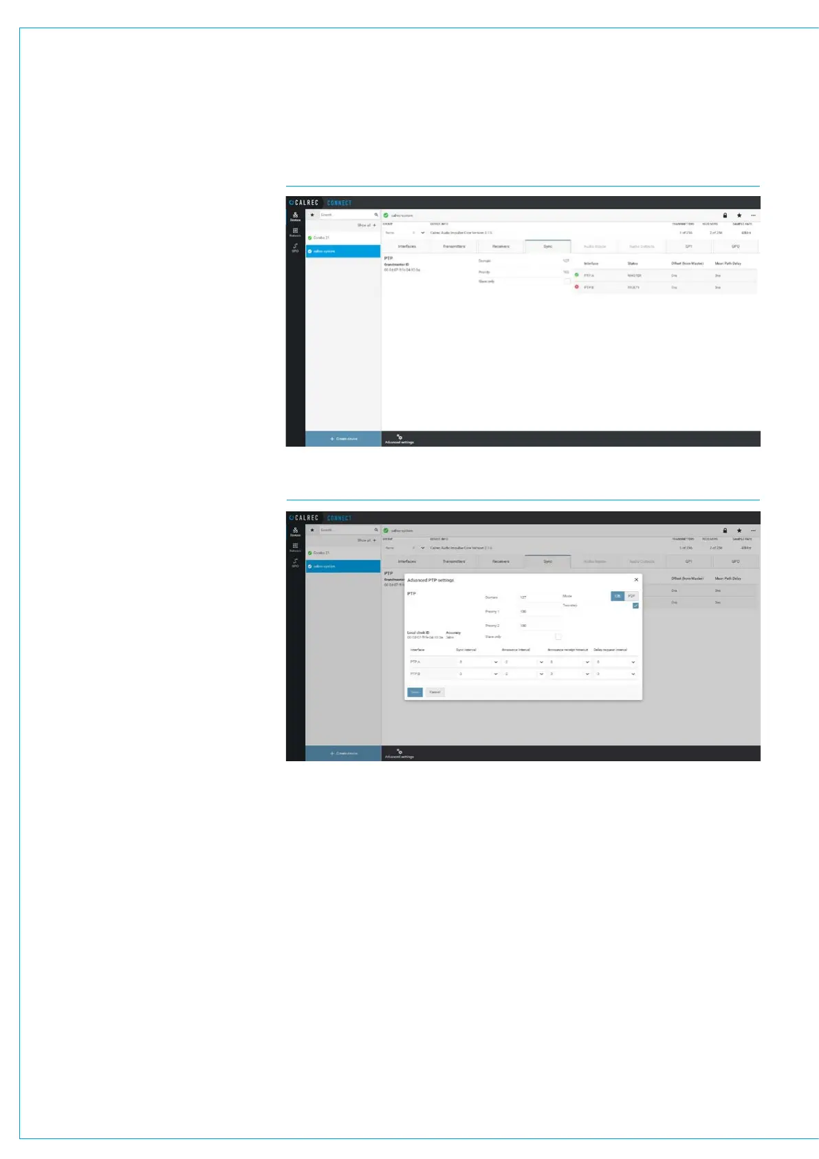 of the devices by setting up PTP clocks