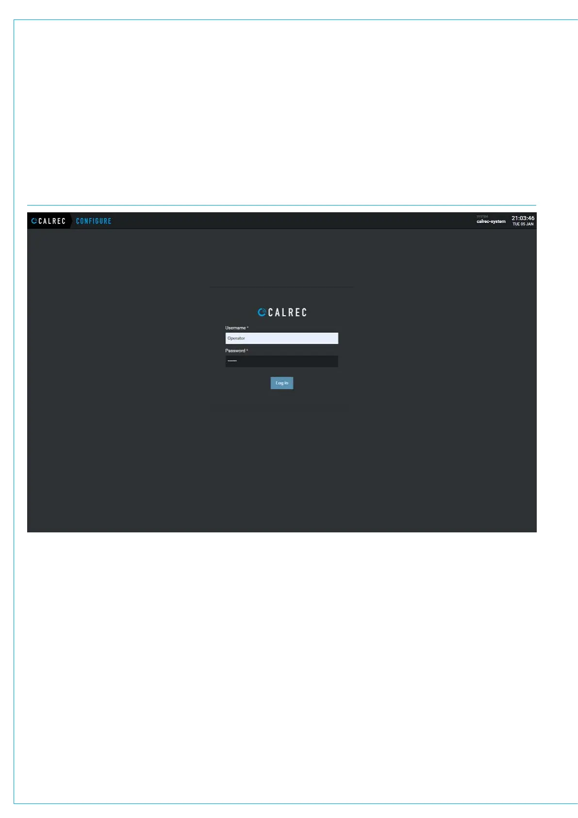 the Password ‘calrec’. Note: both the Username and Password are case sensitive.