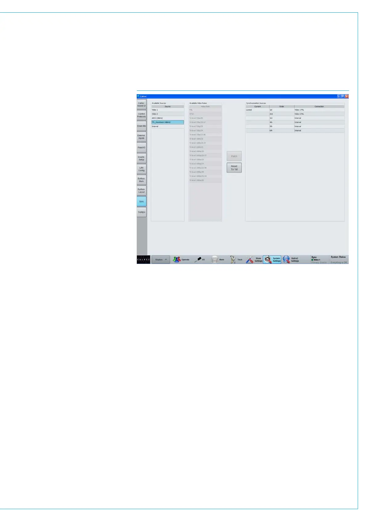 The available sync sources are displayed