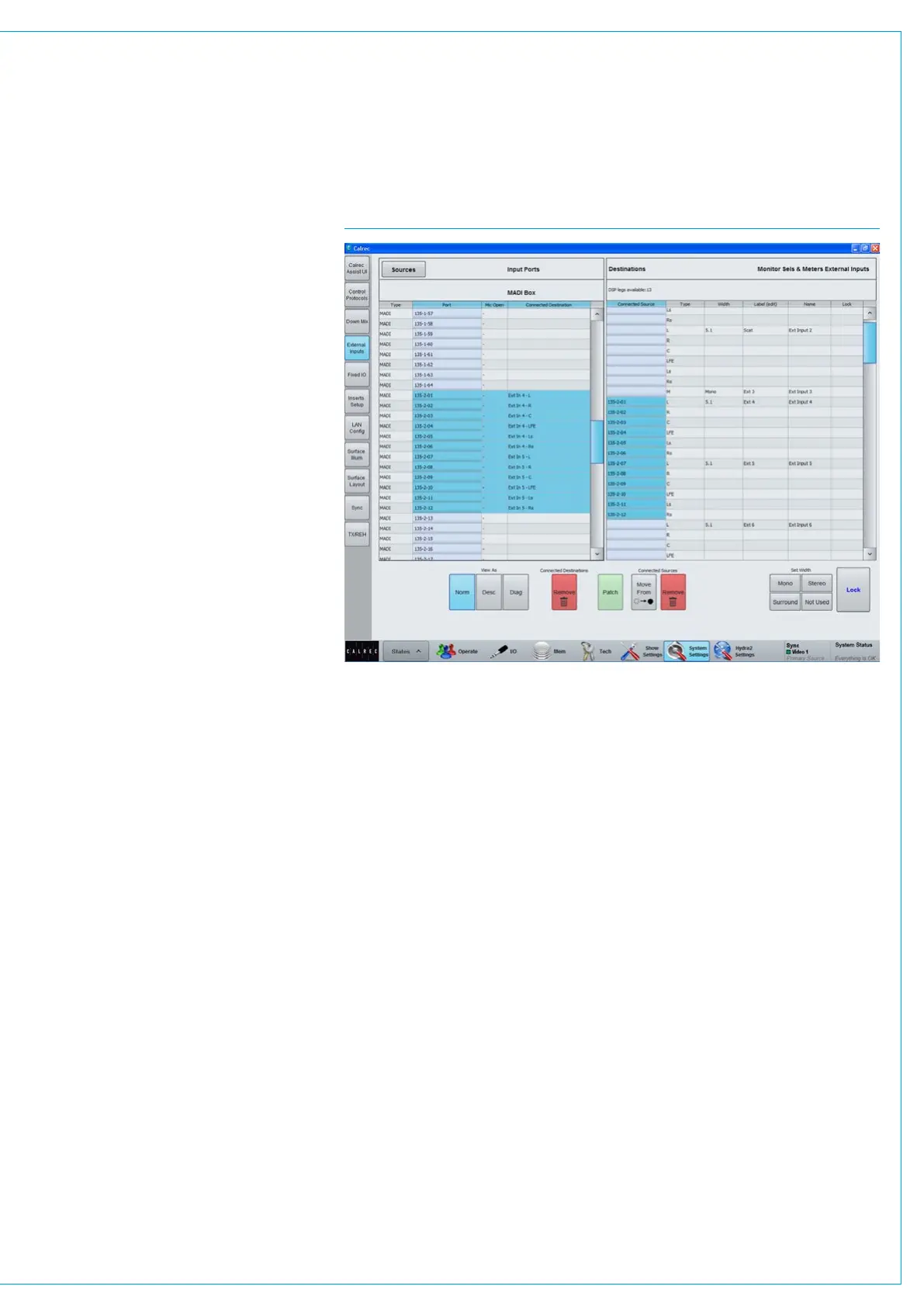 FIG 1 - MAIN APPLICATION, SHOW SETTINGS>EXTERNAL I/P