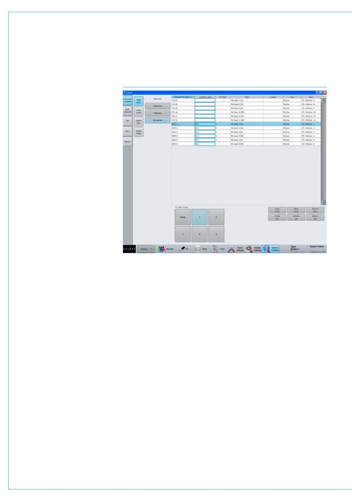 Settings>Port Lists & Labels>Input Alloc