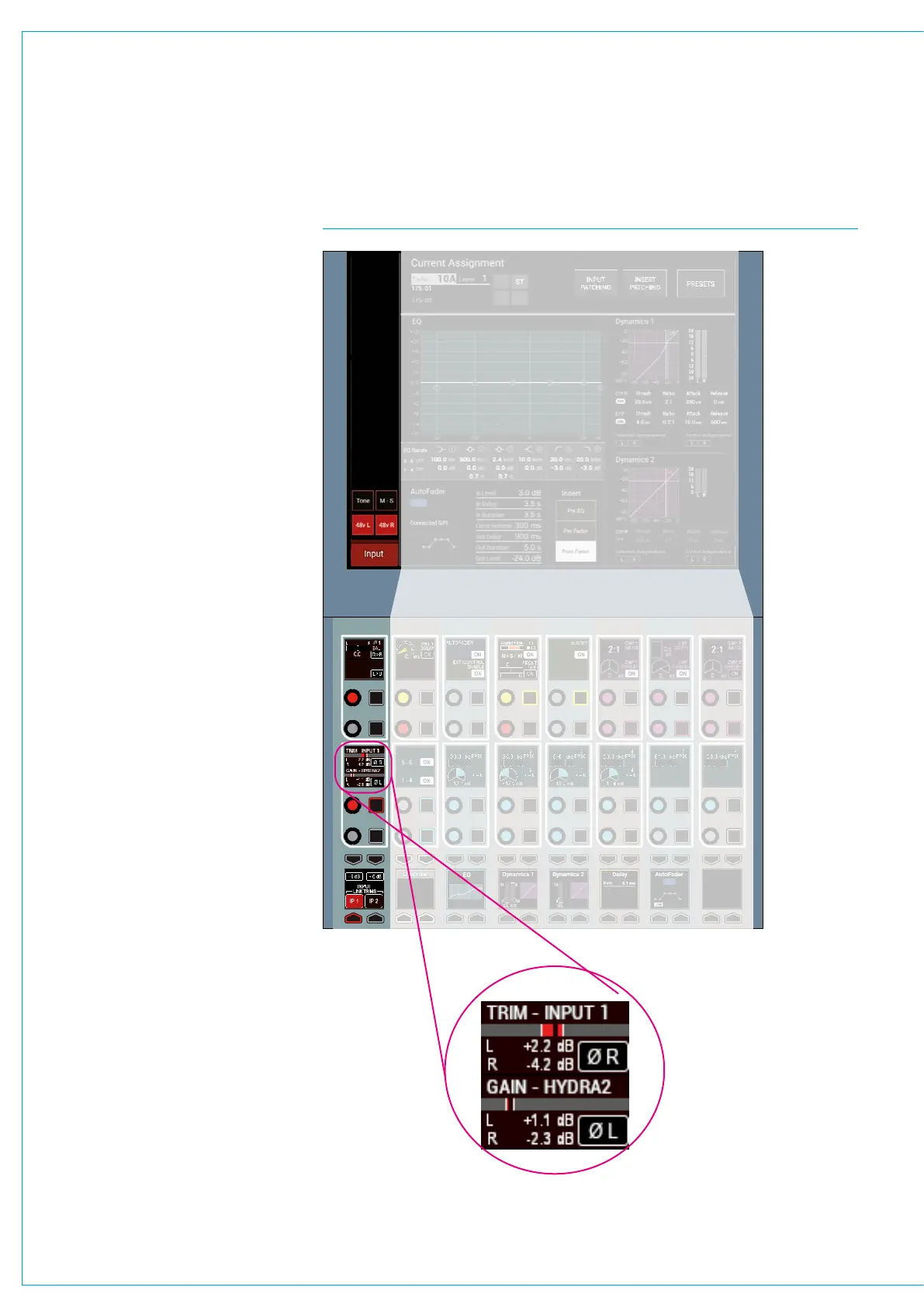 input gain. Pressing the + or - buttons
