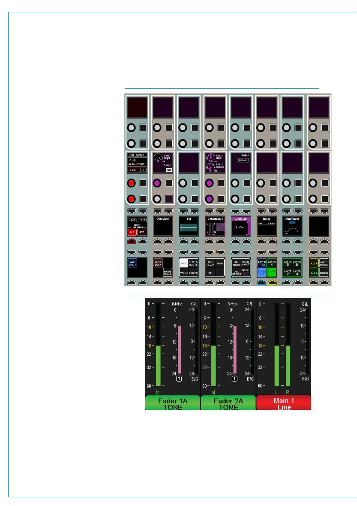 FIG 2 - AUTOMIXER CONTROLS ON THE PROCESSING-DYN 2 PANEL LAYOUT