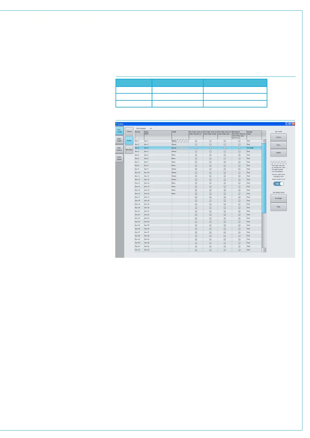 • Auxs cannot route to any other bus.