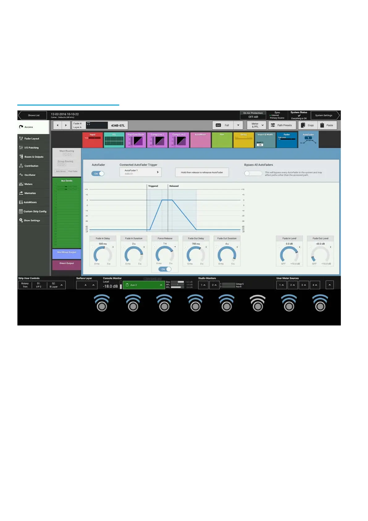• REHEARSE - Press and Hold this button labelled ‘ Hold then release to rehearse AutoFader’ to trigger the AutoFader
