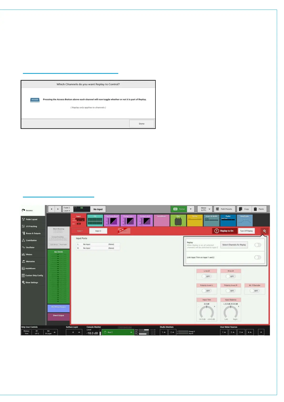 When Replay is active these channels will switch to Input 2, when Replay is turned off the input channels switch back to