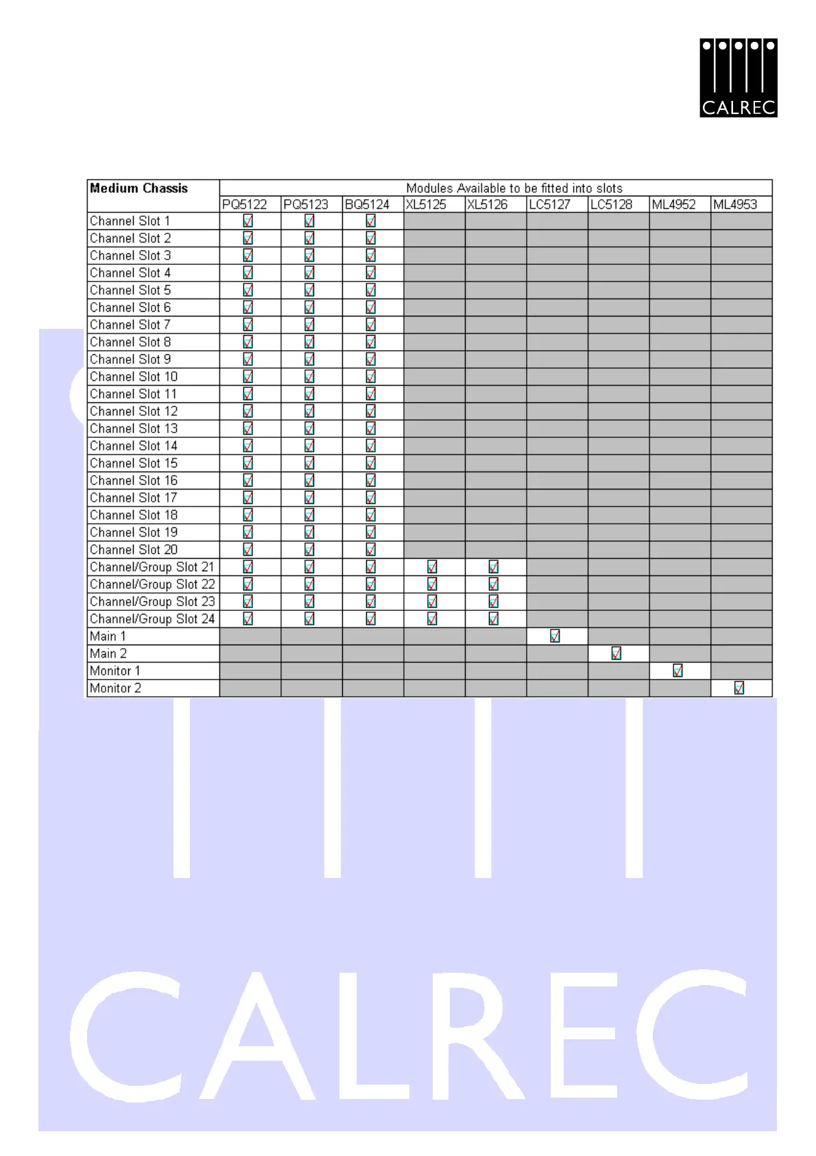 This table shows which slots each module can occupy. The greyed out areas indicate slots